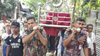 দিনাজপুরের খানসামায় ৫৪তম জাতীয় সমবায় দিবস-২০২৫ উদযাপিত সিলেট ৮ দফা দাবীতে রেলপথ অবরোধ সাধারণ যাত্রীদের ধাওয়া পালালেন অবরোধ কারীরা। সীমান্তে পুঁতে রাখা মাইন বিস্ফোরণে নিহত বিজিবি সদস্য সৈনিক নায়েক আকতার হোসেনের দাফন সম্পন্ন ১৫ নভেম্বরের মধ্যে দাবি না মানলে আমরণ অনশন কর্মসূচি ঘোষণা-সহকারী শিক্ষক সংগঠন। মিথিলা’স কিচেন এর উদ্বোধন উপলক্ষে নাঃগঞ্জেএক্সক্লুসিভ কুকিং ও বেকিং ওয়ার্কসপ অনুষ্ঠিত ঢাকাসহ দেশের ৫ বিভাগে ভারী বৃষ্টির পূর্বাভাস-আবহাওয়া অফিস। জঙ্গি সন্দেহে কলকাতা পুলিশের হাতে গ্রেফতার -মুফতি আবদুল্লাহ আল মাসুদ। সাংবাদিক সাগর-রুনি দম্পতিসহ দেশের সকল সাংবাদিক হত্যার দ্রুত বিচার দাবীতে মানববন্ধন। নরসিংদী রায়পুরায় জমি সংক্রান্ত বিরোধে ২ভাইকে হত্যা। কুষ্টিয়ার কুমারখালীতে আওয়ামী লীগ’বিএনপি নেতাকর্মীদের সংঘর্ষে আহত ২