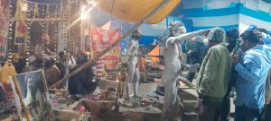 তাহার মধ্যে হাতে রুটি, ফল কচুরি,, বিস্কুট, জল, ভাত তো রকমেরই আয়োজন‌ রয়েছে। লাইন দিয়ে দর্শনার্থী ও পুনার্থীদের খেতে দেখা যায়।