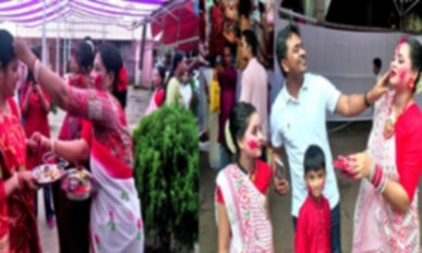 নারায়ণগঞ্জে সর্বত্র প্রতিমা বিসর্জনের পূর্বে ছিলো সিঁদুর খেলা