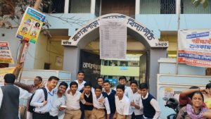 মাধ্যমিকের শেষ দিনে পরীক্ষার্থীদের মুখে হাসি—আগরপাড়া মহাজাতি বিদ্যাপীঠের সামনে এসএফআই-