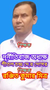 সাবেক শীতল চন্দ্র দে র অবৈধ কর্মকাণ্ডের বিরুদ্ধে প্রতিবাদ করায় বিগত দুই বছর নারায়ণগঞ্জ গার্লস স্কুল এন্ড কলেজের শীতলের পকেট কমিটির নামধারী সভাপতি ইউসুফ আলীকে নিয়ে বরখাস্তের অজুহাতে ২০২৩ সনের ২৫ মে, বরখাস্ত করেন,এবংনা না অপকর্মের হোতা শীতল চন্দ্র দে অবৈধ ভাবে
