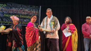 মঞ্চে উপস্থিত সকল অতিথিদের উত্তরীয় পরিয়ে ও পুষ্পস্তবক দিয়ে সম্মানিত করেন।
