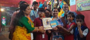সুবর্ণ জয়ন্তী বর্ষে প্রতিমার আবরণ উন্মোচন করলেন, জি বাংলা খ্যাত ” ফুলকি”(দিব্যানী মন্ডল)।