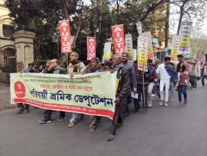 ৬ দফা দাবী নিয়ে পরিযায়ী শ্রমিকরা মিছিল করে, রাজ্যপাল এবং কেন্দ্রীয় ও রাজ্য শ্রম দপ্তরে ডেপুটেশন দিলেন।