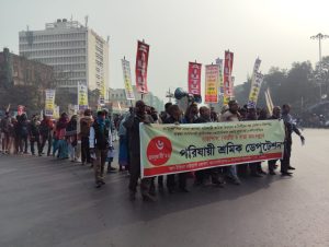 ৬ই জানুয়ারি মঙ্গলবার, ঠিক দুপুর বারোটায় , অল ইন্ডিয়া মাইগ্র্যান্ট ওয়ার্কার্স অ্যাসোসিয়েশনের আহবানে, এবং পশ্চিমবঙ্গ রাজ্য কমিটির সম্পাদক তপন মুখার্জির উদ্যোগে, এ আই ইউ টি ইউ সি অনুমোদিত, কয়েকশো পরিযায়ী শ্রমিক সুবোধ মল্লিক স্কোয়ারে জমায়েত হয়ে,