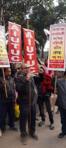 বেলা ১:৩০ নাগাদ মিছিল করে এস এন ব্যানার্জি রোড ধরে, ধর্মতলা ডরিনা ক্রসিং হয়ে ওয়াই চ্যানেলে জমায়েত হন এবং একটি সংক্ষিপ্ত সভা করে, ৬ দফা দাবী নিয়ে , রাজ্যপাল এবং কেন্দ্রীয় রাজ্য শ্রম দপ্তরের ডেপুটেশন দিলেন।