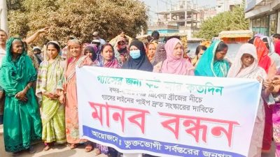 বেতনের অর্ধেকের বেশি টাকা লাকড়ি কিনতে কিনতে শেষ,গ্যাসের লাইন সংস্কারের দাবিতে মানববন্ধন